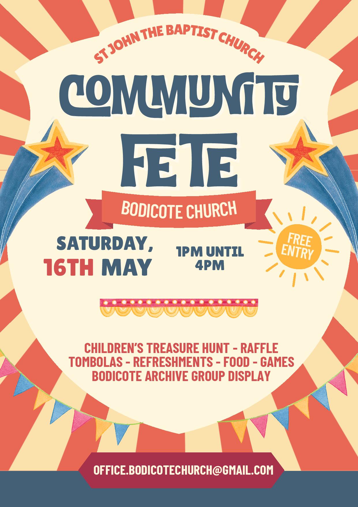 Taking place in Church House , the churchyard (weather permitting!) and the church, involving various local community groups and charities. Bodicote Archive Exhibition in back room of Church House. Children's treasure hunt, raffle. Proceeds will be going to the various groups involved. FREE admission.