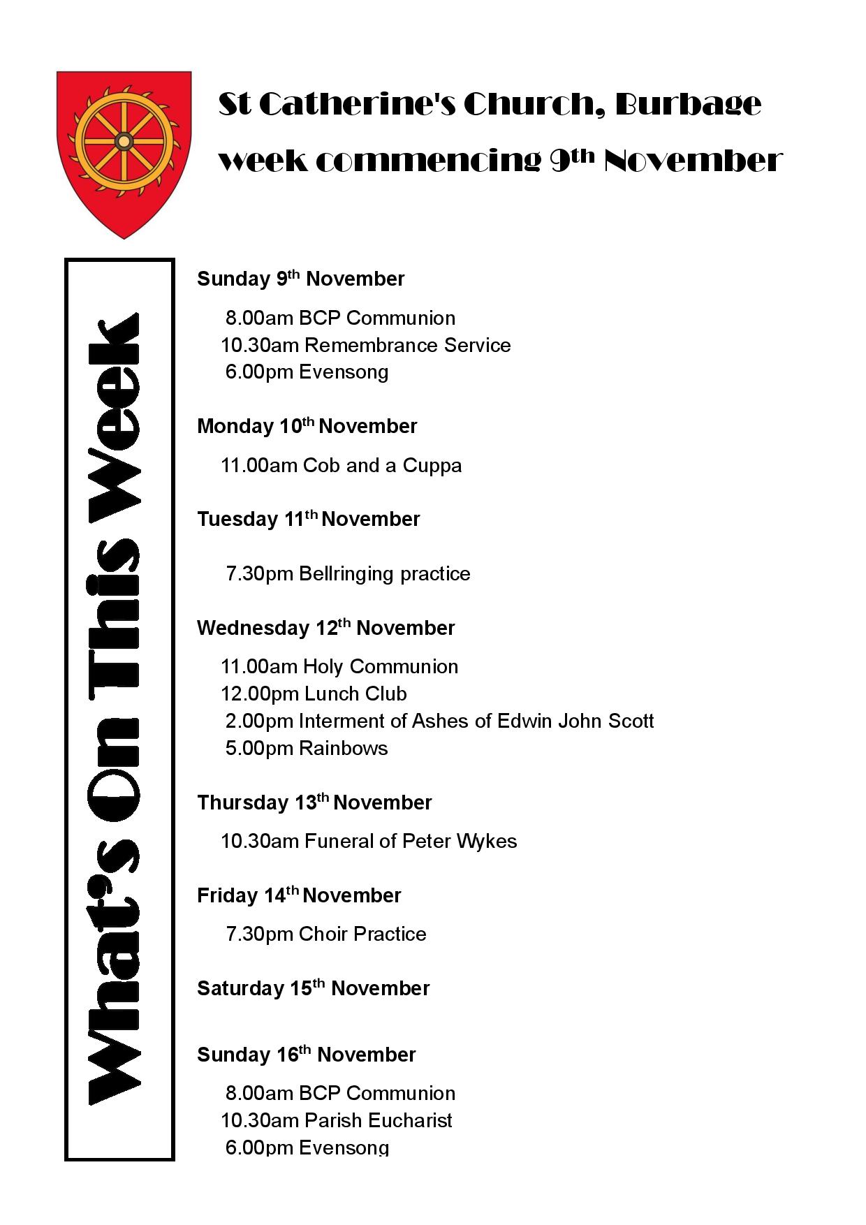9th November 2025 Weekly Notice Sheet