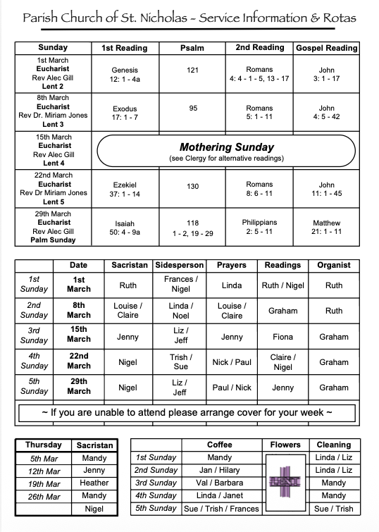 Information for those members of the congregation who will be taking an active role during the service.