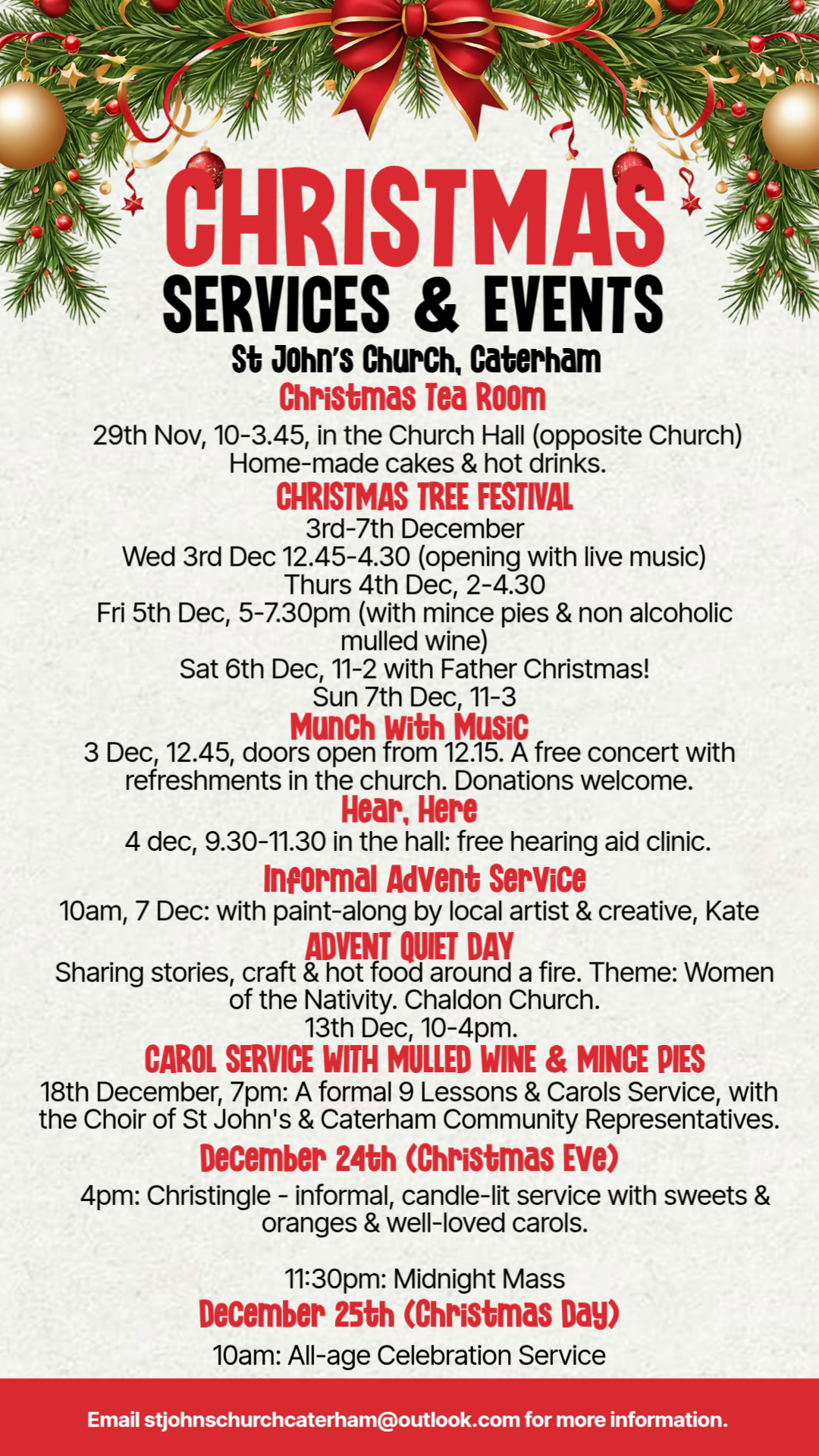 A formal 9 Lessons and Carol Service, with the Choir of St John's and Caterham Community Representatives