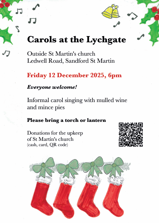 Carols in Duns Tew Churchyard. Bring a torch or lantern. Mulled wine and mince pies.