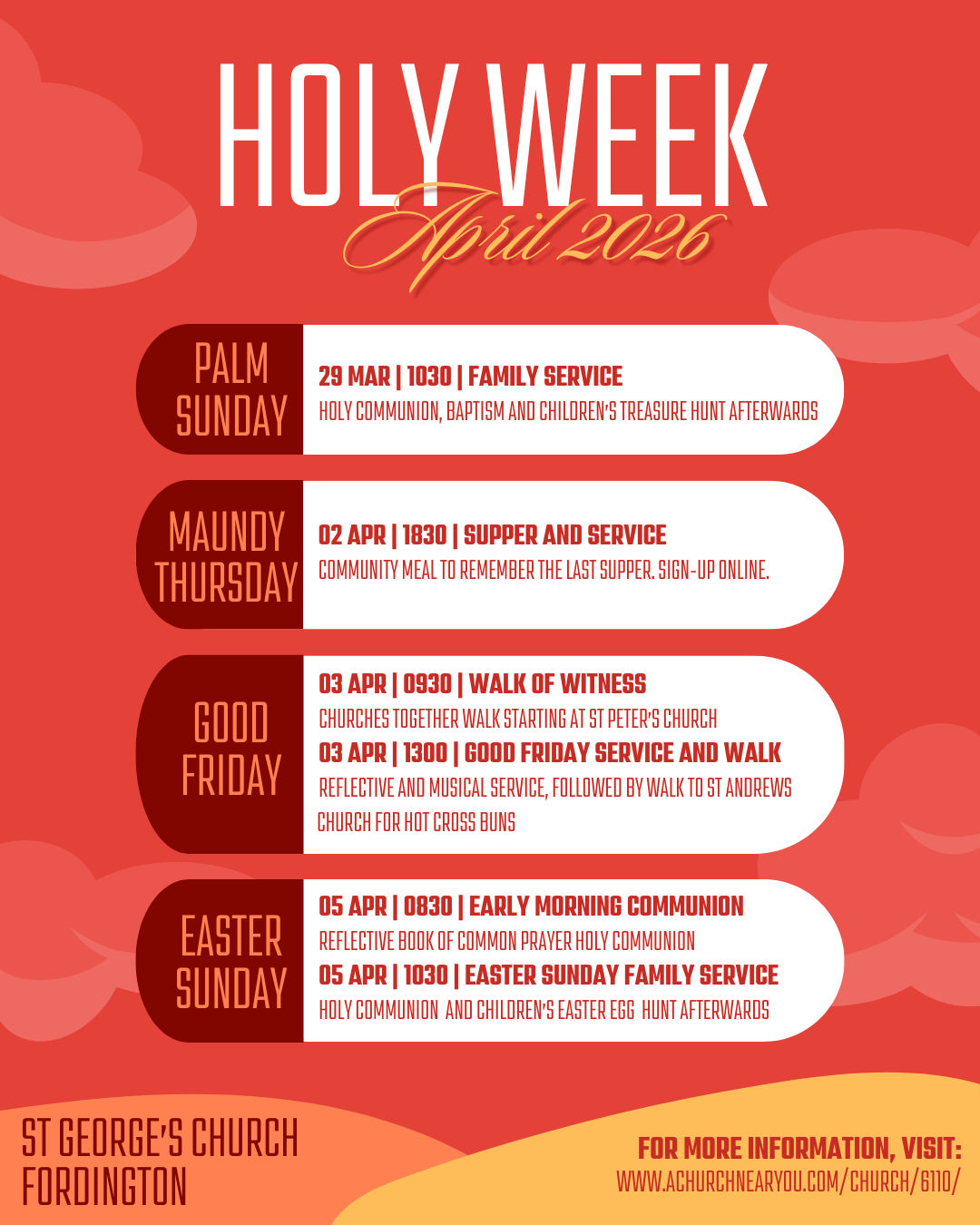 Summary of services and events this Holy Week.