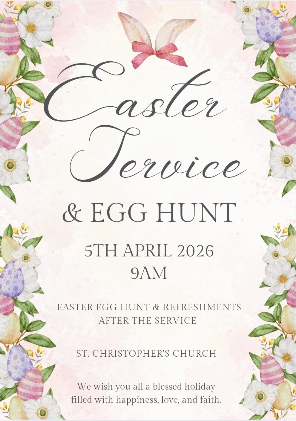 Join us for a Mothering Sunday Service on 15th March at 10.30am. Bouquets for all ladies. All welcome. Refreshments will be served afterwards.