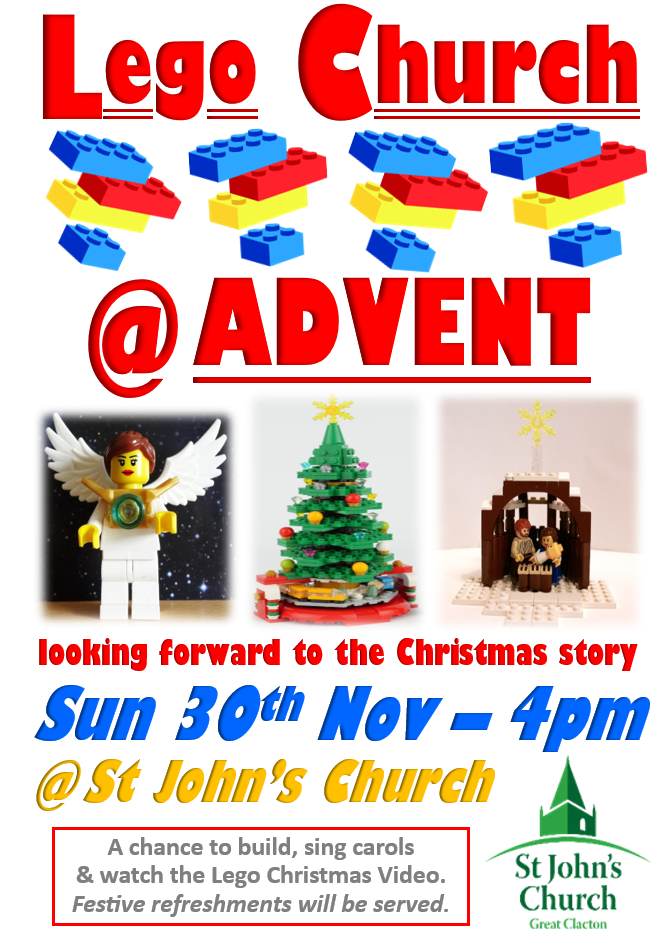 Advent special edition of our monthly Lego Church service for all the family with carols, the Advent story in Lego plus festive refreshments.