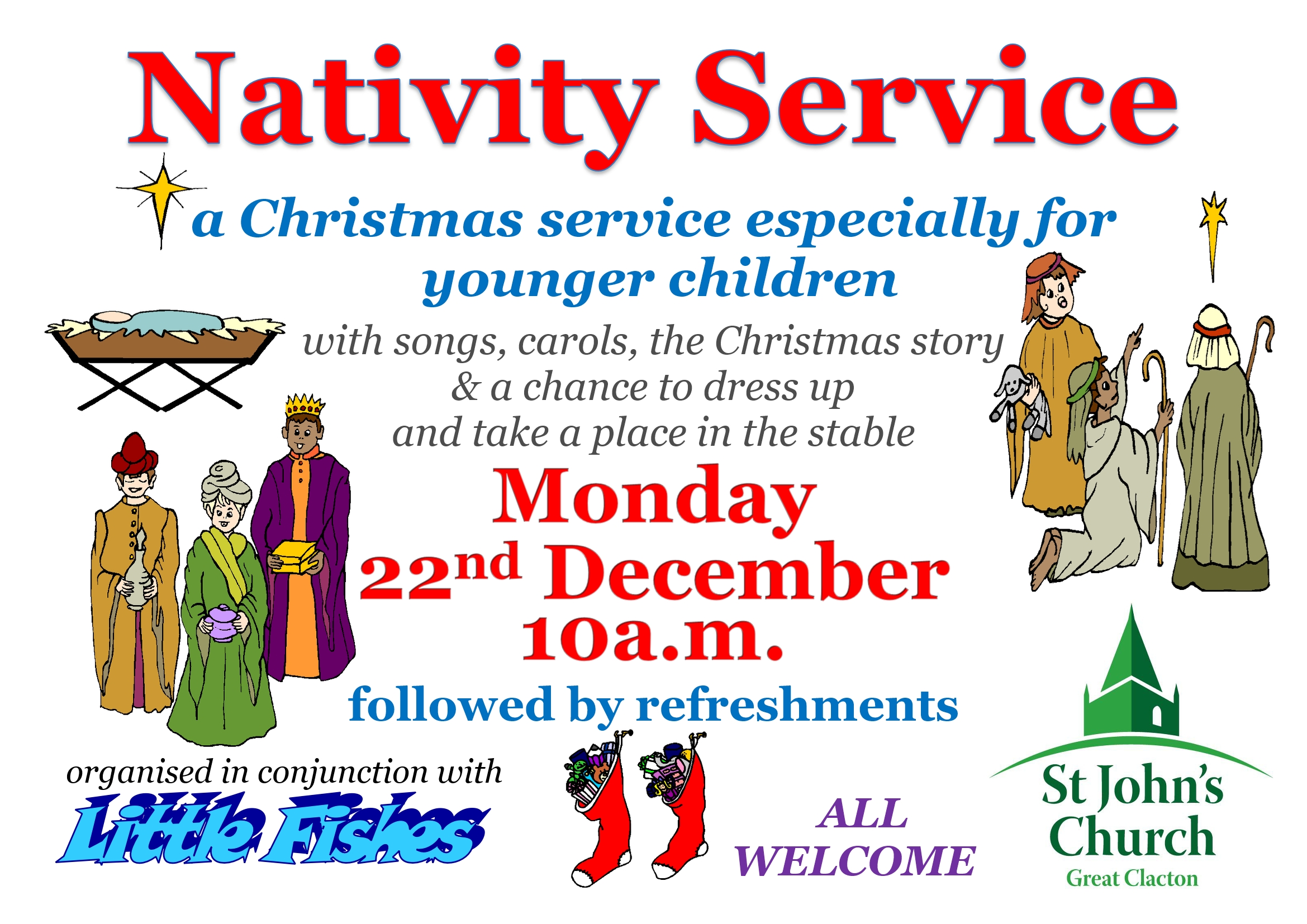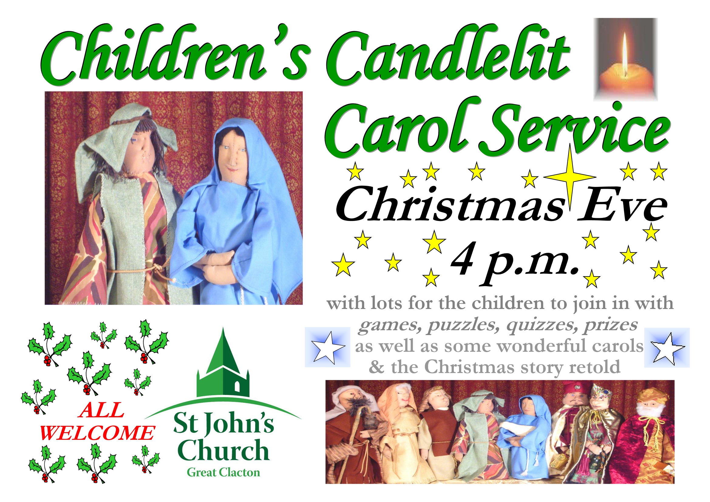 A Family Carol service especially for the young, with carols and the Christmas story.