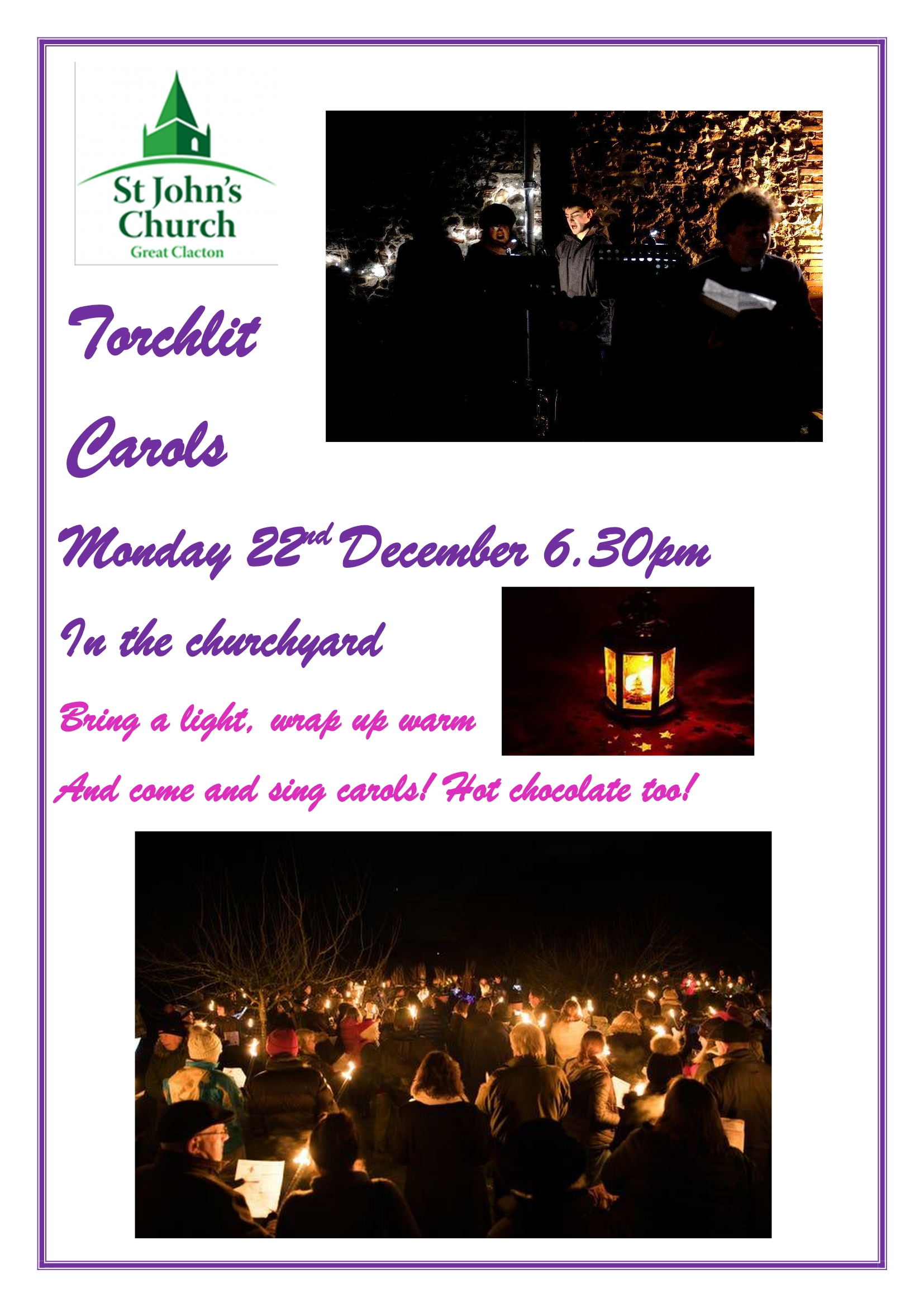 A special outdoor service, subject to the weather, bring a light, wrap up warm with hot chocolate served afterwards. If the weather does not allow then we shall hold the service inside the Church.