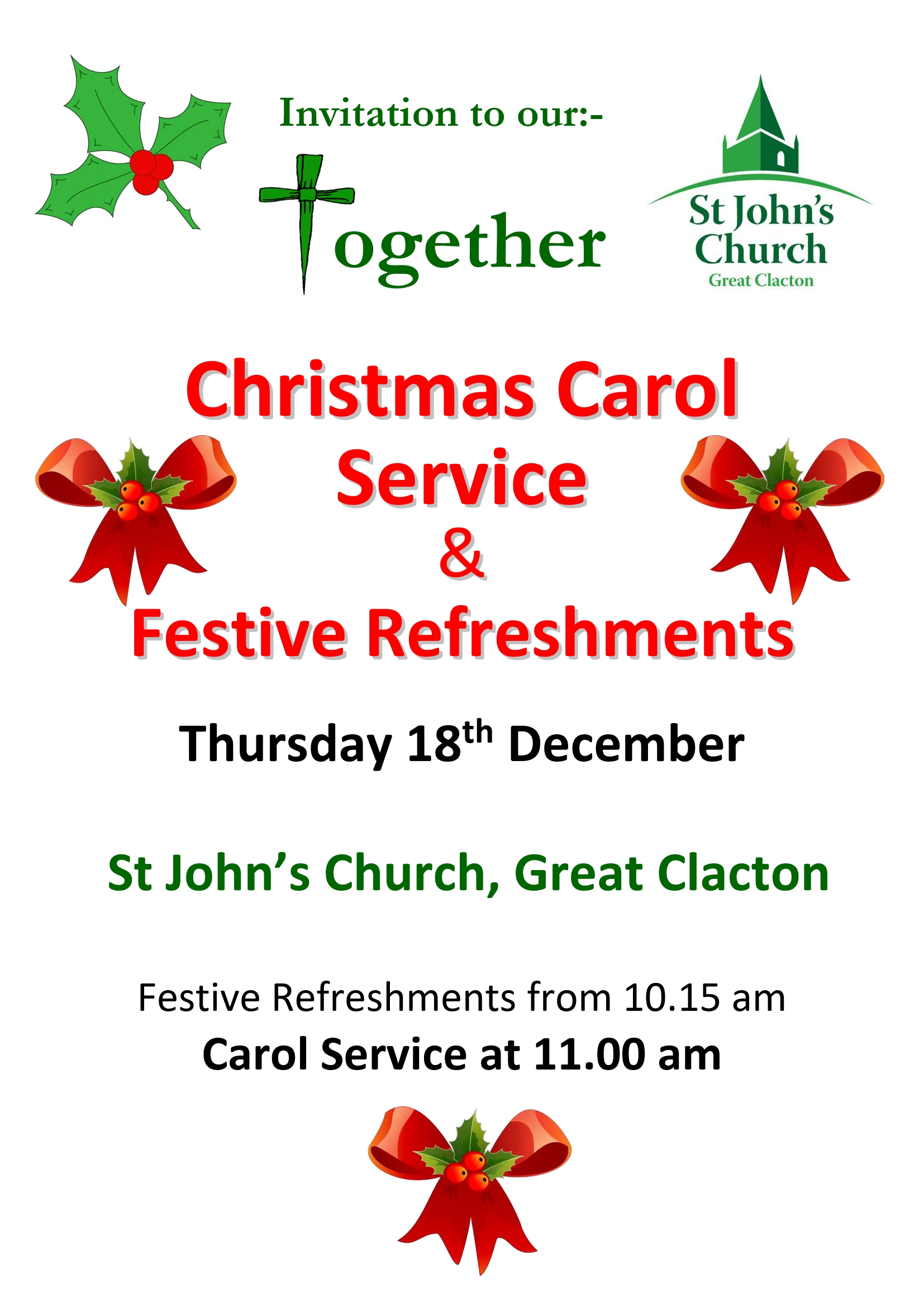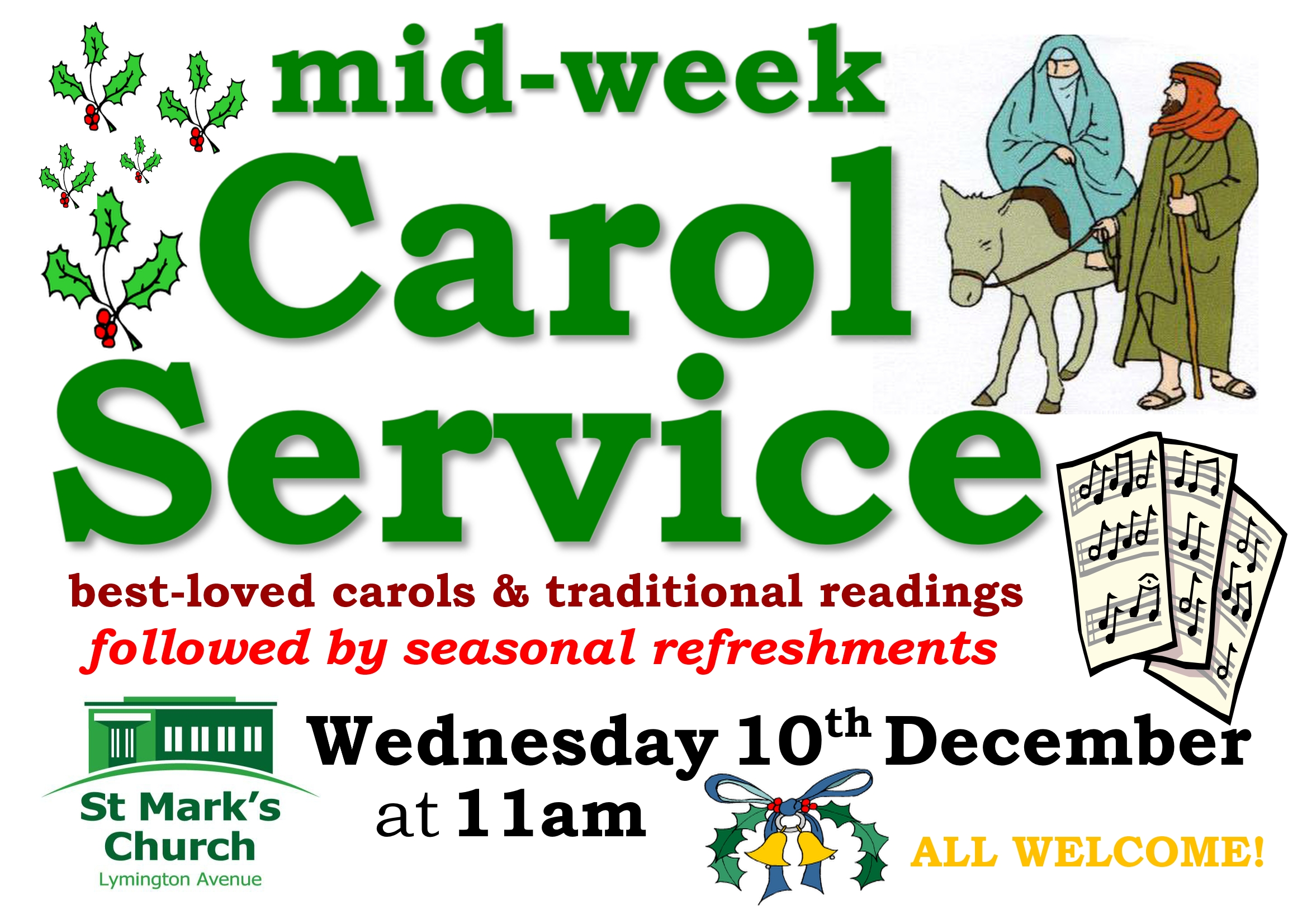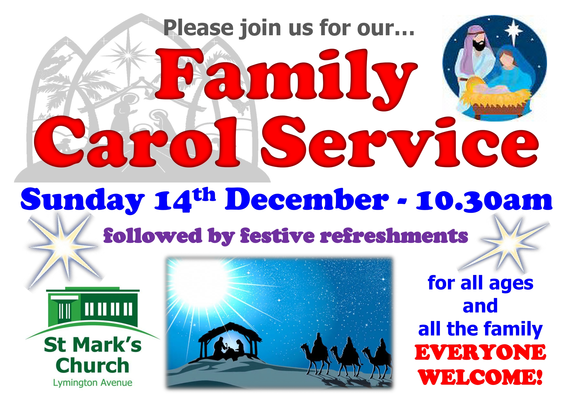 Family Carol service for all ages with Carols, Crafts for the children and festive refreshments