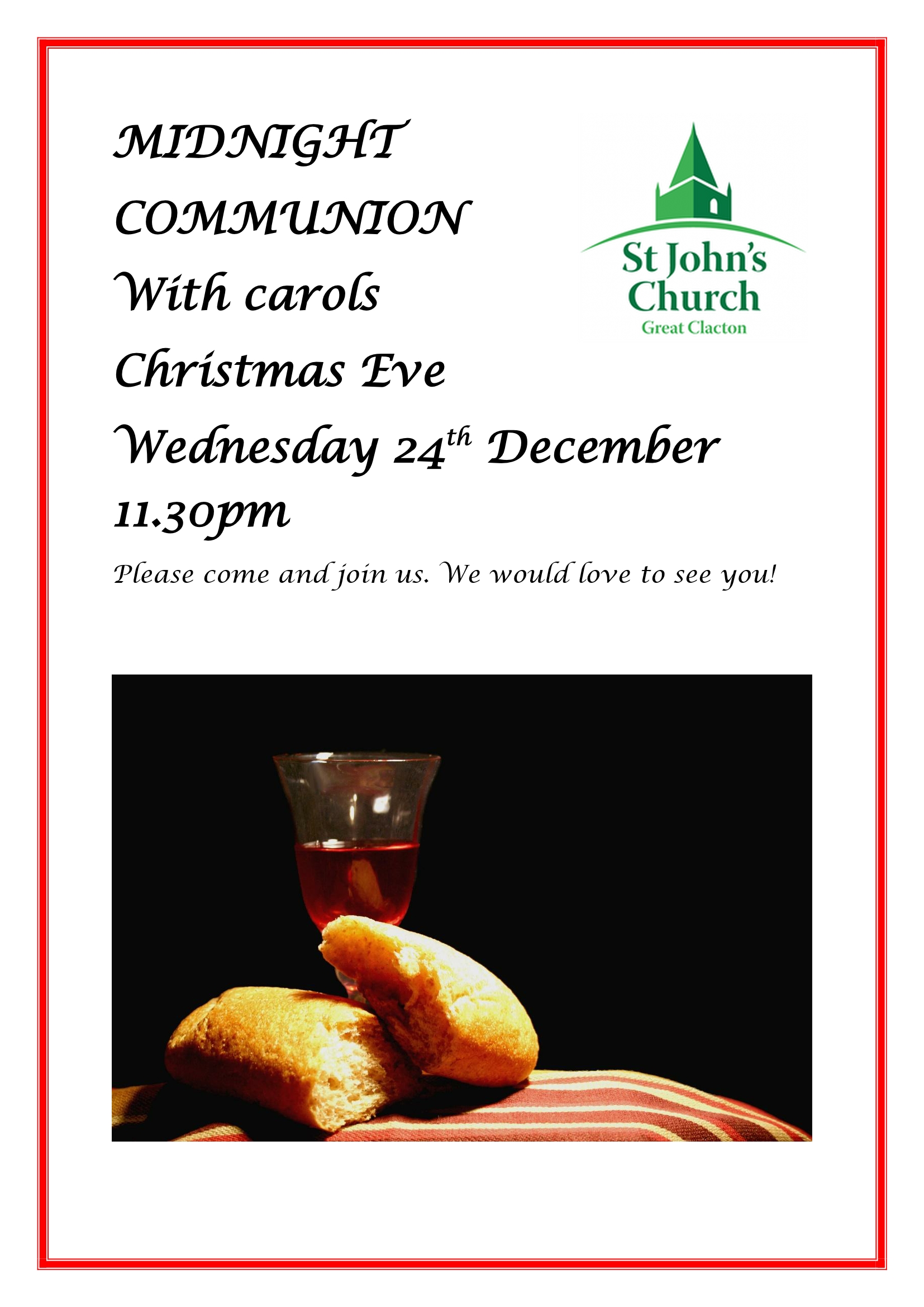 Christmas Eve Communion service with Carols to welcome in Christmas day