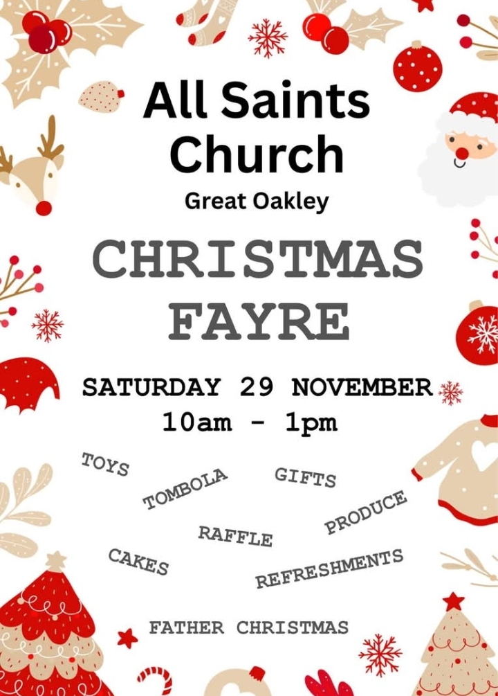 Do come along to sample lots of Christmas goodies - Raffle, Homemade cakes, Crafts, Toys, Games, and a visit from Santa.