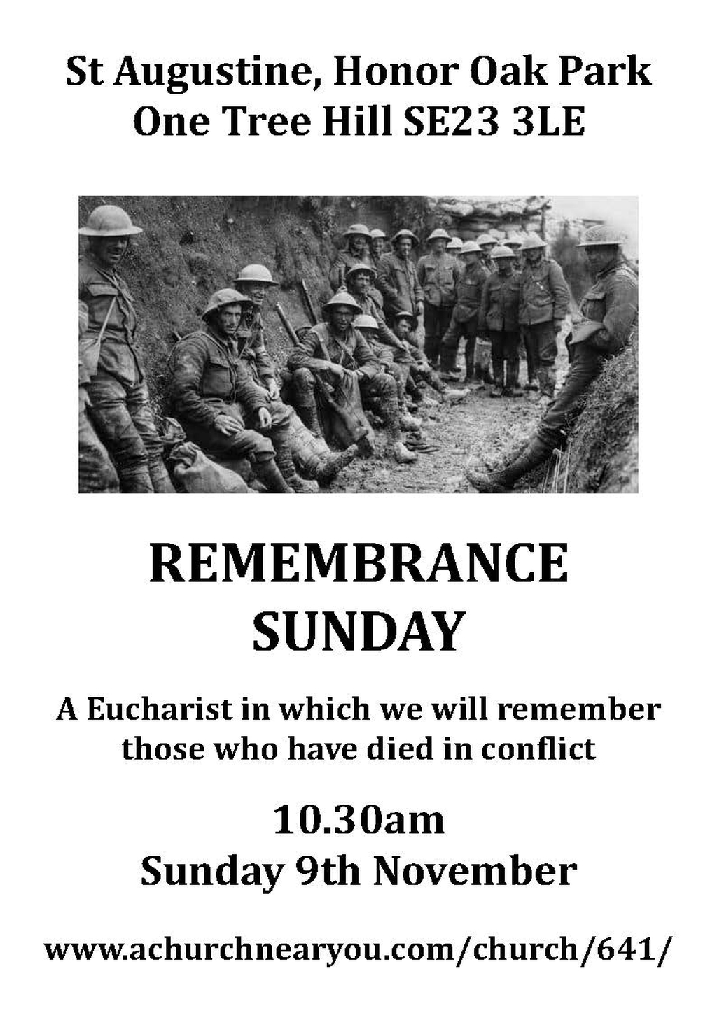 Sunday 9th November 10.30am REMEMBRANCE SUNDAY A service in which we will remember those who have died in conflict.