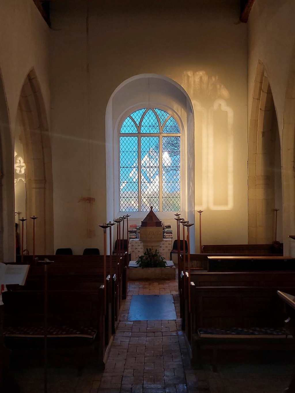 St Mary's church was built in the 14th century, to this day, it remains without heating or lighting, other than that provided by candles, and is set amongst arable fields between the villages of Ingatestone and Stock. It is what one might call an agricultural church, not only because of its setting but also because of its services. In addition to the two services held every month , services are held each year to celebrate plough Sunday, Rogation, Lammas and Harvest. The church is opened daily for visitors, which due to the surrounding public footpaths and open countryside, over a year, are numbered in hundreds.