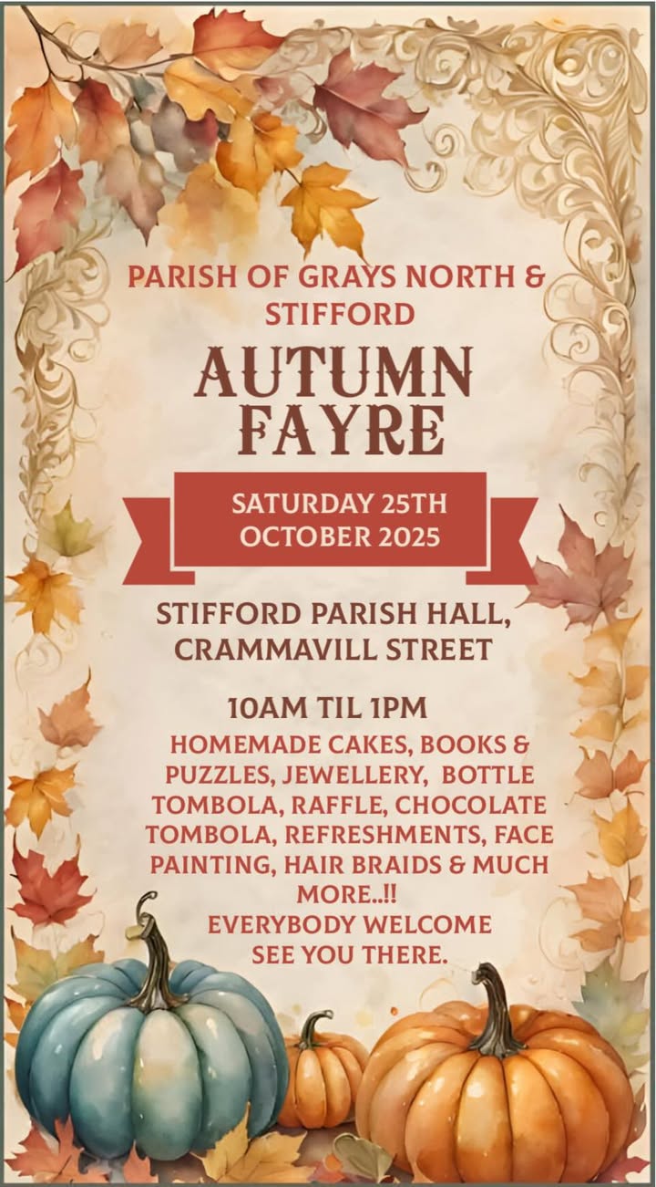 Hosted by North Stifford Village Hall and supported by our Parish churches, do come along for Tea or coffee, cake and chat. With bingo on the last Thursday of each month. Donations for the Parish or various local charities which we support.