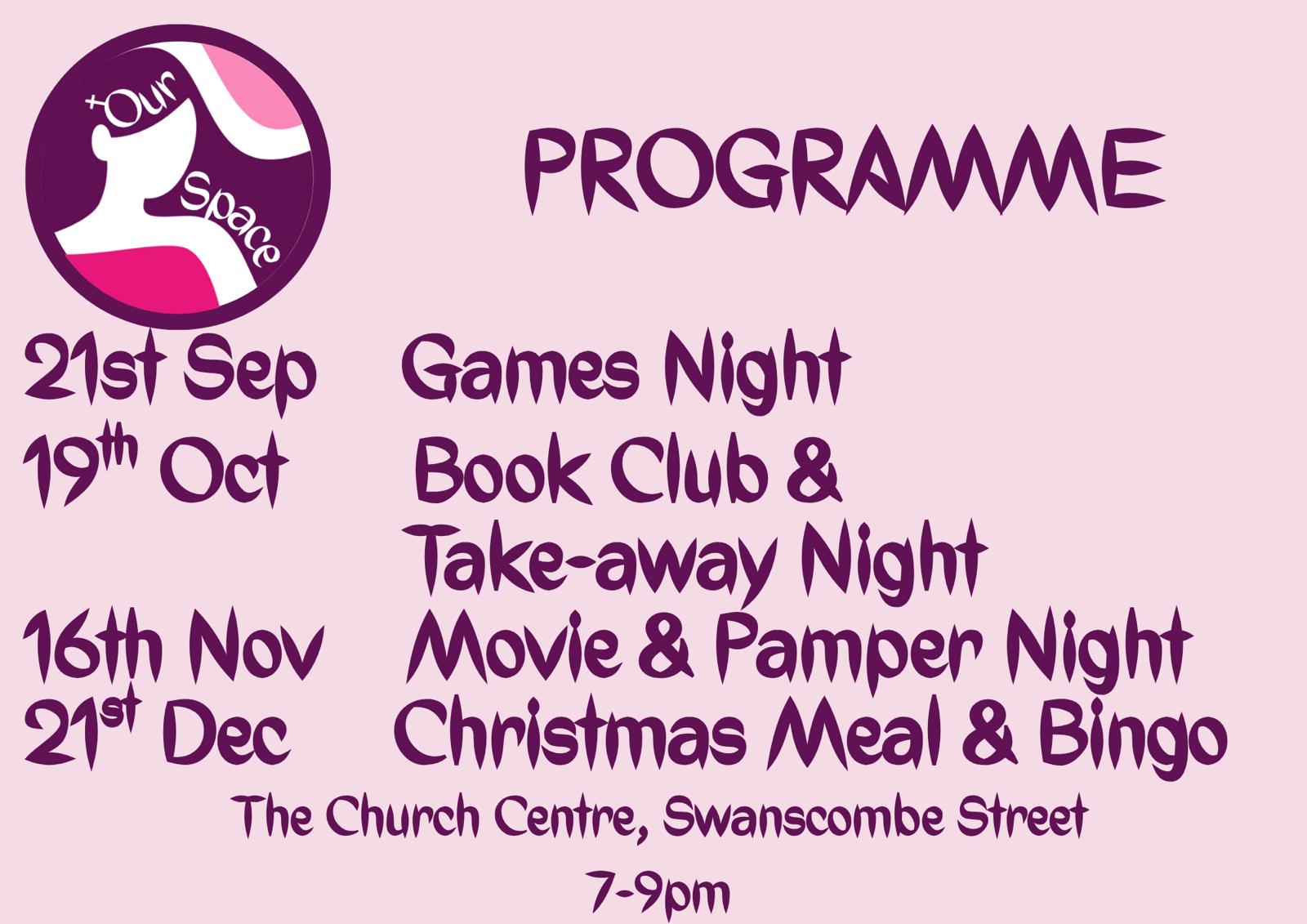 A space for ladies to find friendship and support through games, activities, film nights, book clubs and other themed nights.
