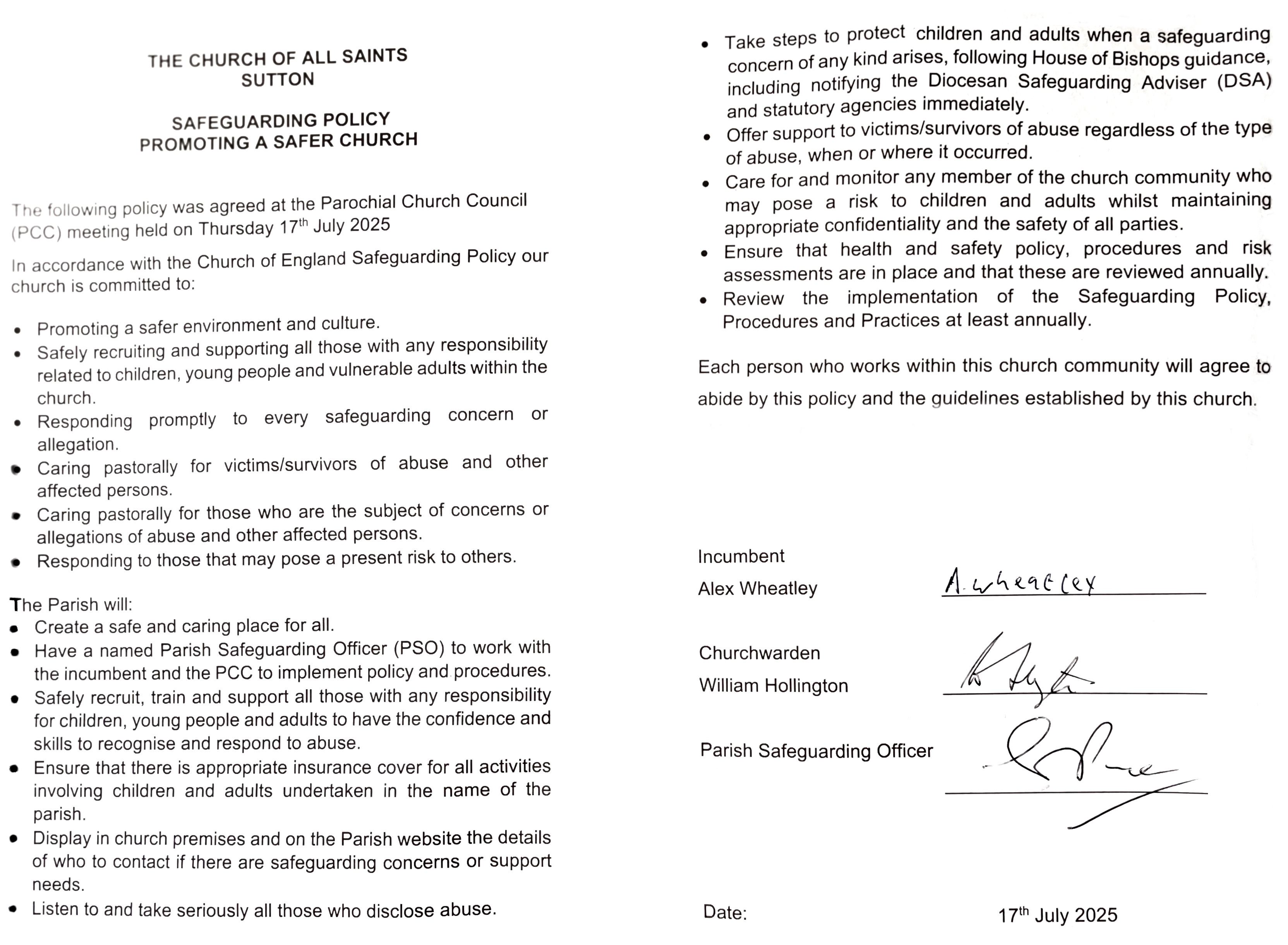All Saints Sutton is proud to be a part of the Diocese of St. Albans in the Church of England, whose Archbishops, Bishops, clergy and leaders are absolutely committed to safeguarding as an integral part of the life and ministry of the Church.