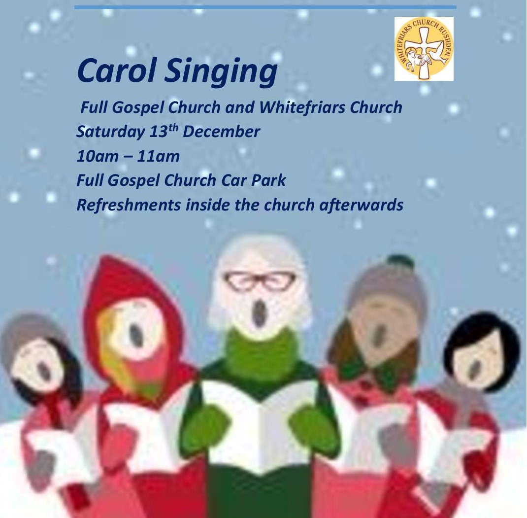 Come and join us as we join the Full Gospel church to sing Christmas Carols outside in the carpark on Saturday morning from 10am-11am on Saturday 13th December followed by hot drinks and mince pies inside.
