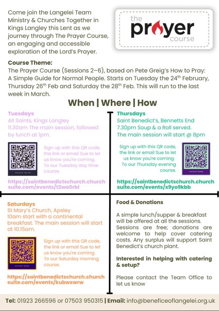 See attached document for full details or see how to sign up in the flyers at the back of our churches.