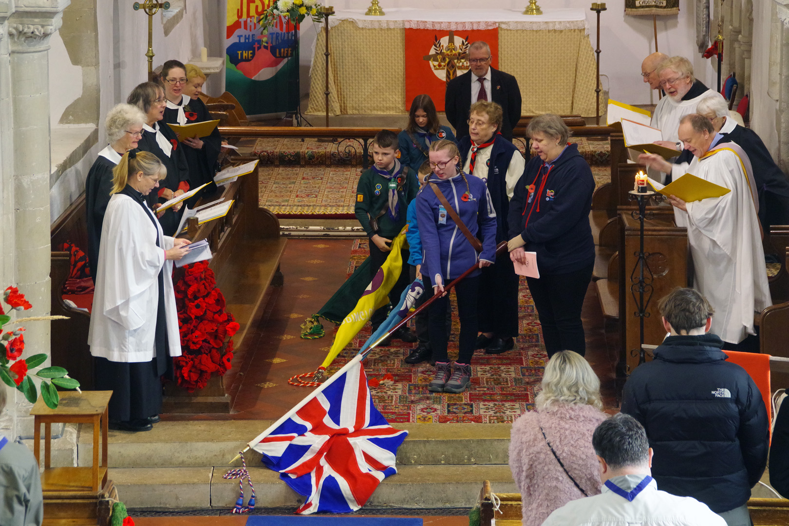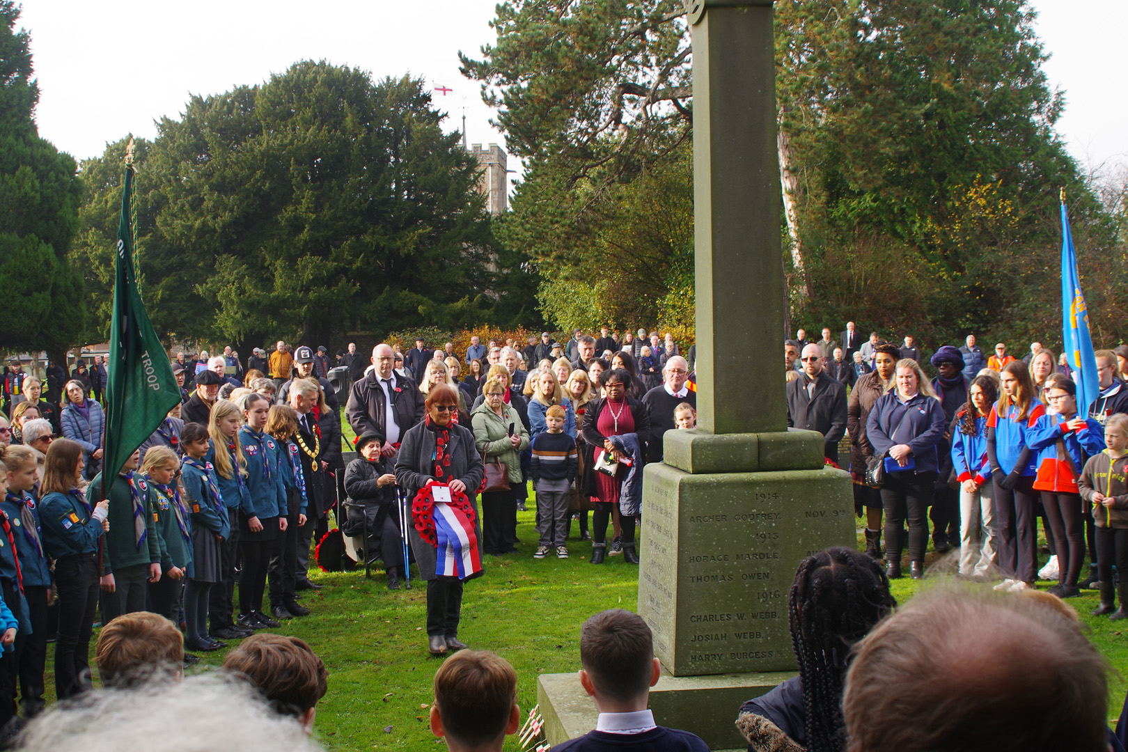 Parishioners, local residents, Scouts, Guides, Cubs, Brownies and pupils representing Caddington Village Primary School gathered at our war memorial for our service.