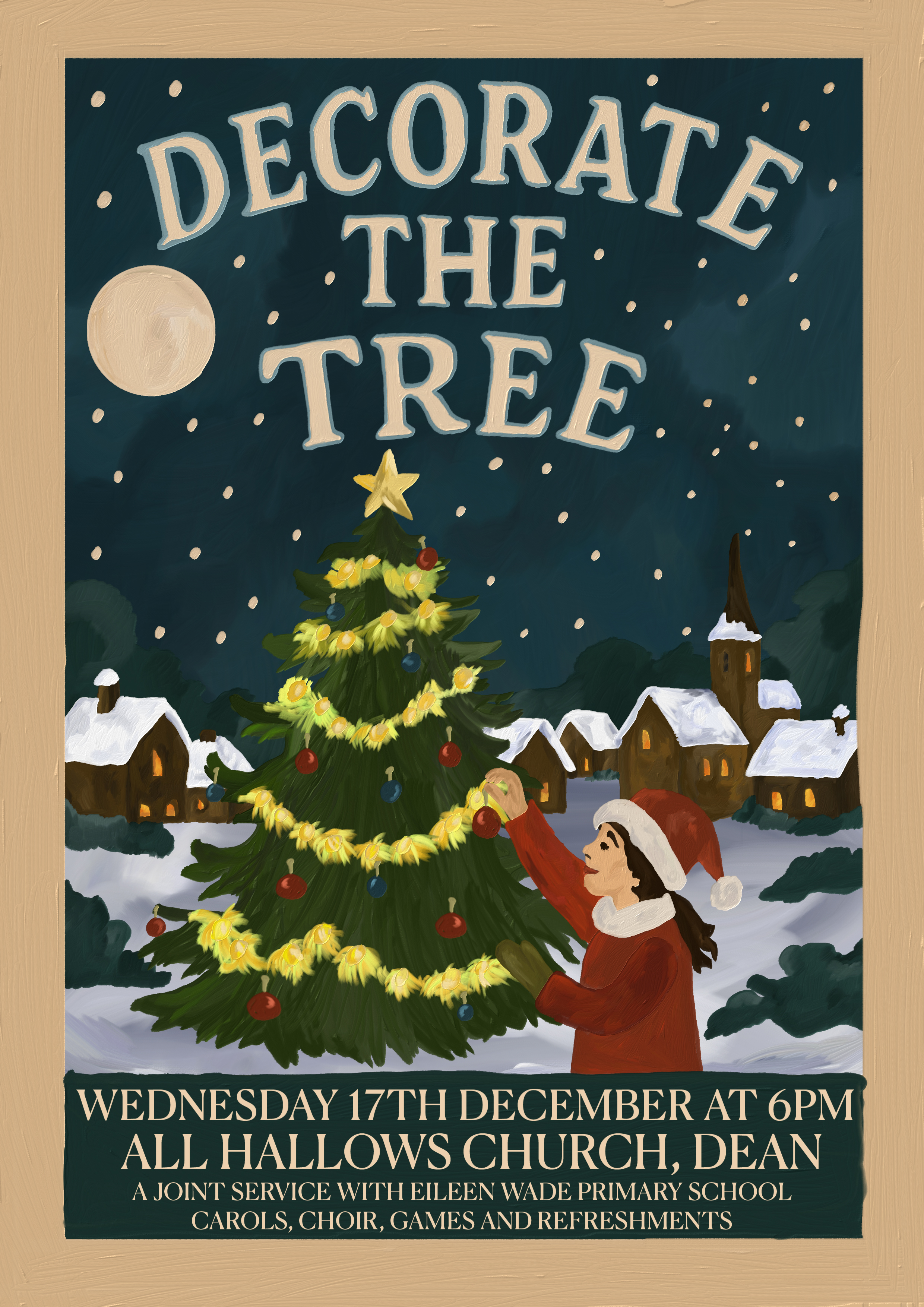 A family service with activities and the Christmas tree, refreshments and of course decorating our Christmas tree and telling the Christmas Story.