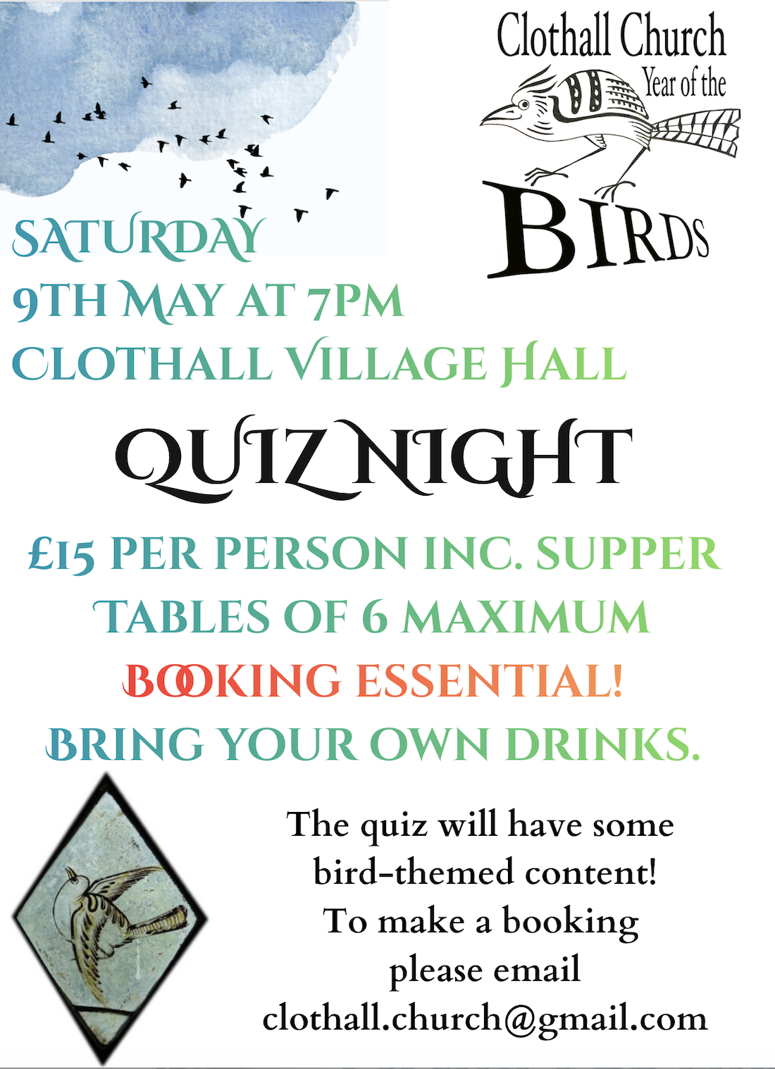 Revd. Sarah Richardson will usually be at Clothall each Wednesday from 0930 for Morning Prayer.