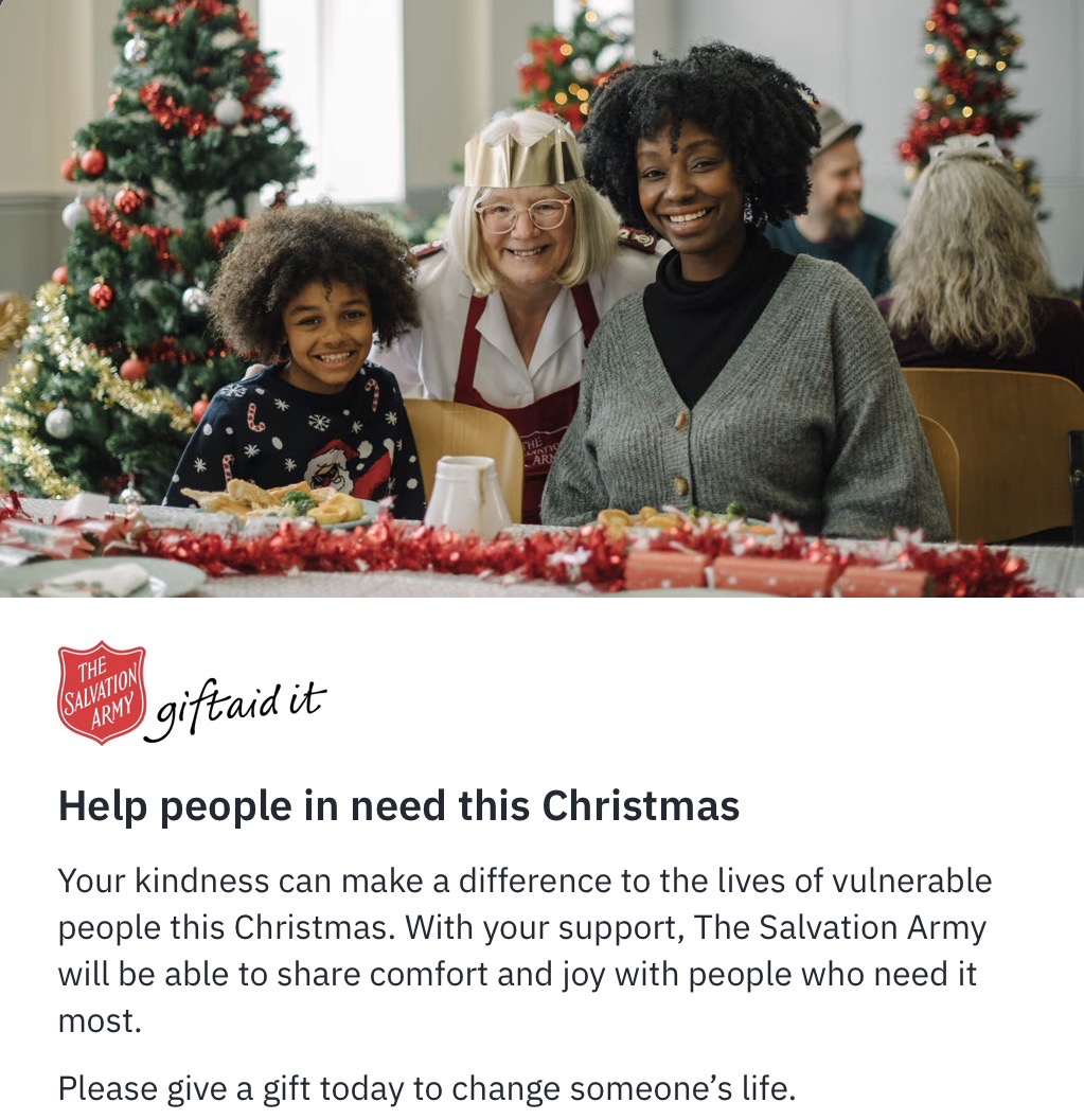 “We want to reach out to the people who are suffering the most by bringing joy and hope into their lives. We know times are tough for many people, and families will struggle to feed and clothe their children. There will be some people struggling to keep a roof over their heads and others who will find themselves on cold and dangerous streets. In 600 communities across the country, The Salvation Army will be doing all we can for people in desperate need, whatever their circumstances."