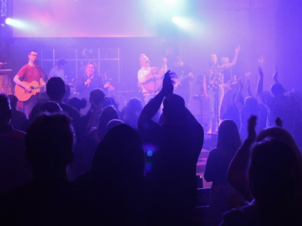 This service contains sung worship, prayers, songs, readings from the Bible, and a sermon. The worship is led by a band with contemporary songs as well as hymns with an organ.