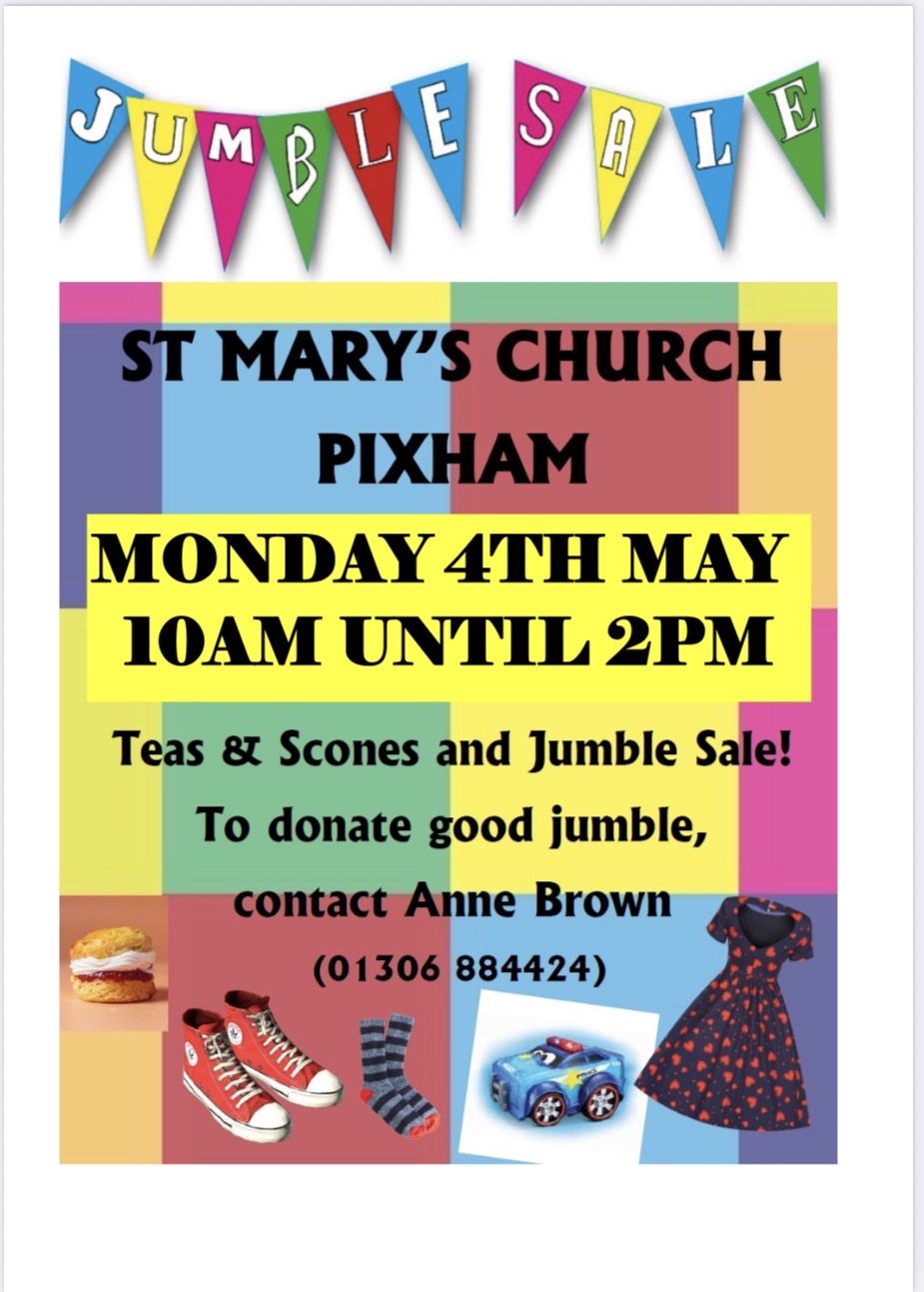 St Mary's Pixham~Monday 4th May~Jumble Sale and Refreshments