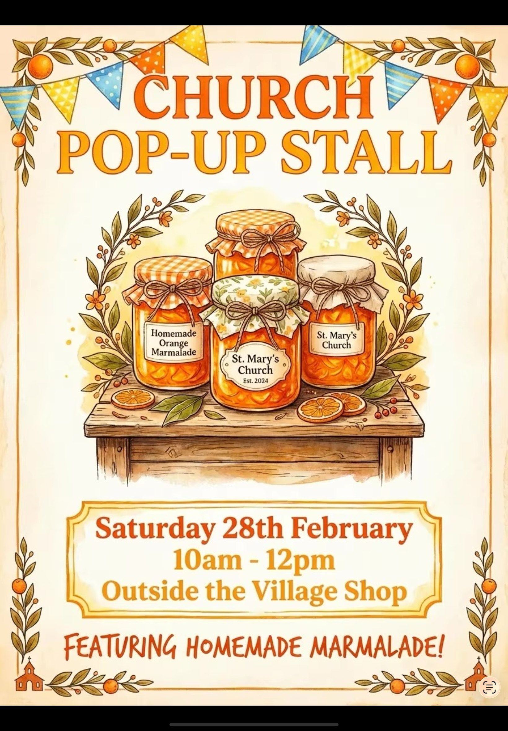If you want a special, unique present to take to friends this spring, call in and buy some of the special home-made marmalade on sale at our Pop-Up Stall.