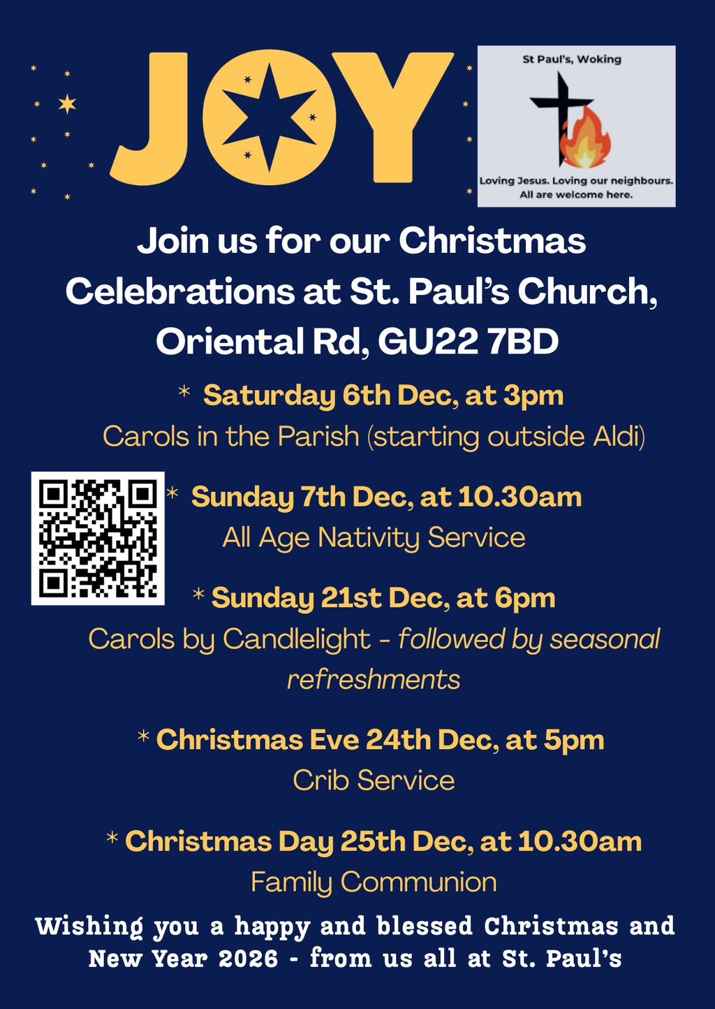 23 10:30 AM - 11:30 AM Sunday morning worship in person at church, on Facebook and the website www.stpaulswoking.org.uk at St Paul's Woking, a friendly place to worship