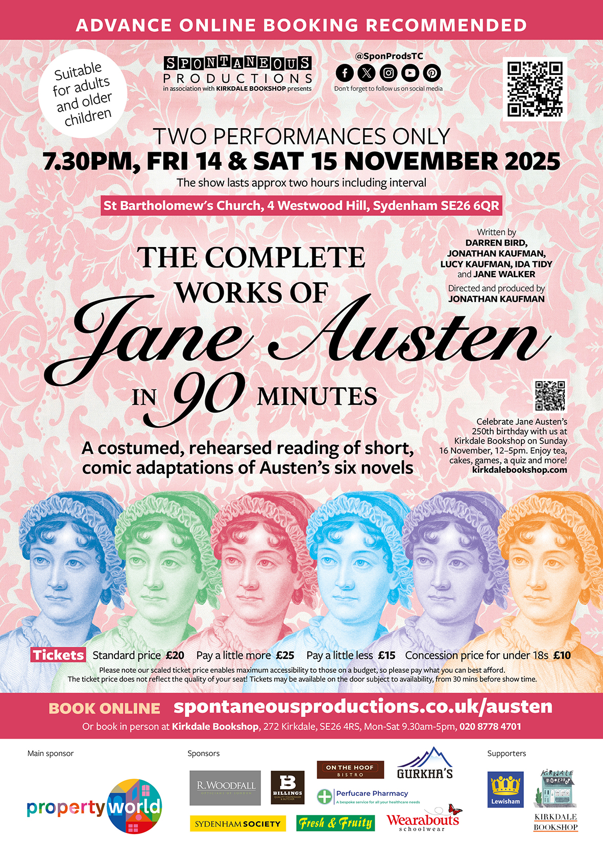 Tickets from Kirkdale Bookshop or online at: spontaneousproductions.co.uk/austen