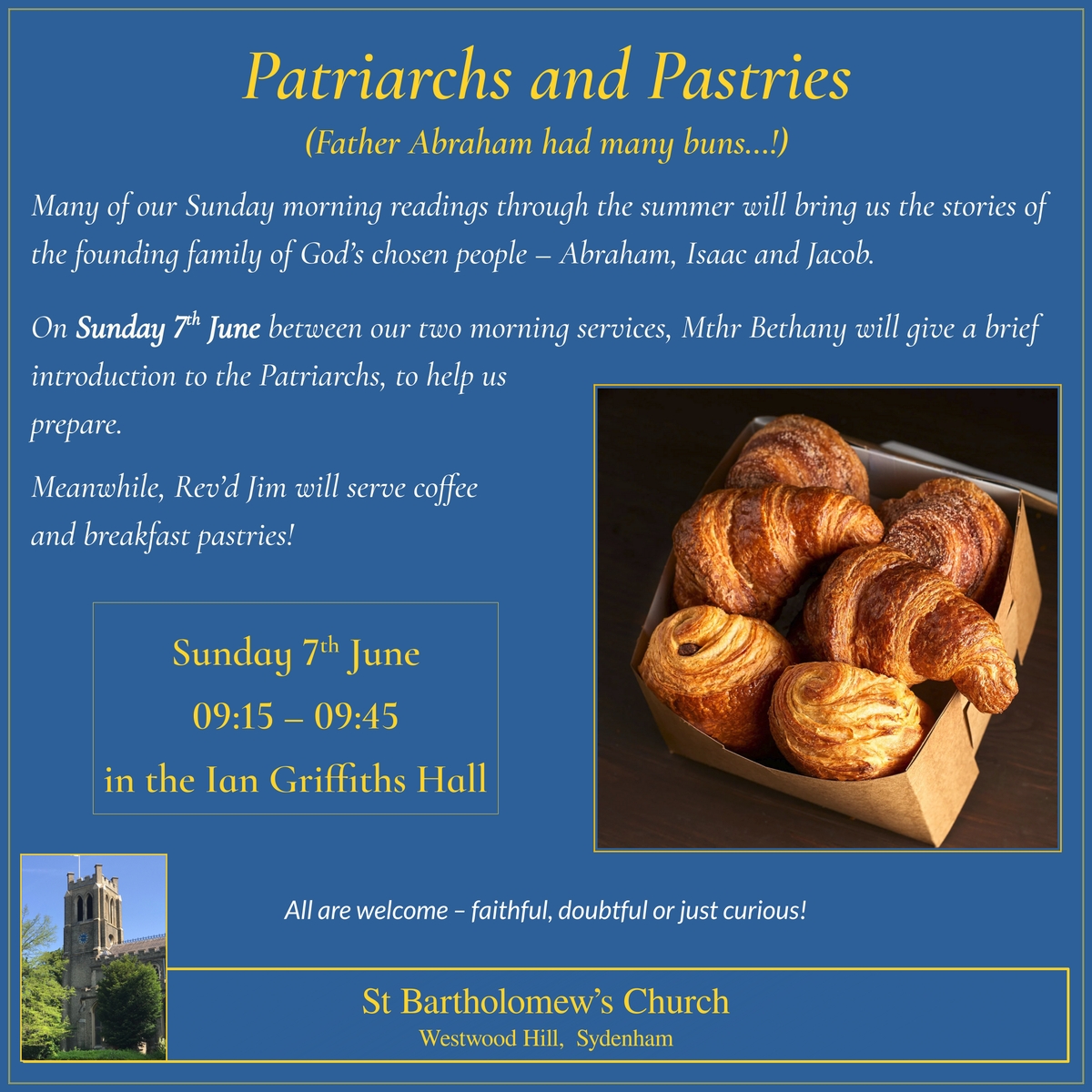 A brief introduction to the founding family of Gods people in preparation for hearing some of their stories in our summer Sunday readings. Plus breakfast pastries.