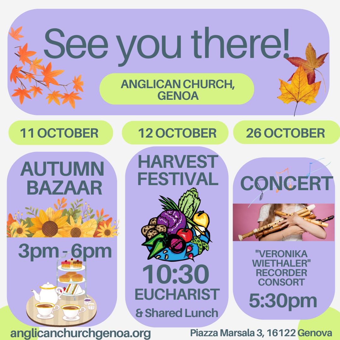 Our Autumn Bazaar on 11th October from 3pm - 6pm will be followed by our Harvest Festival service on Sunday 12th October. After the service there will be a bring and share lunch. All are welcome.