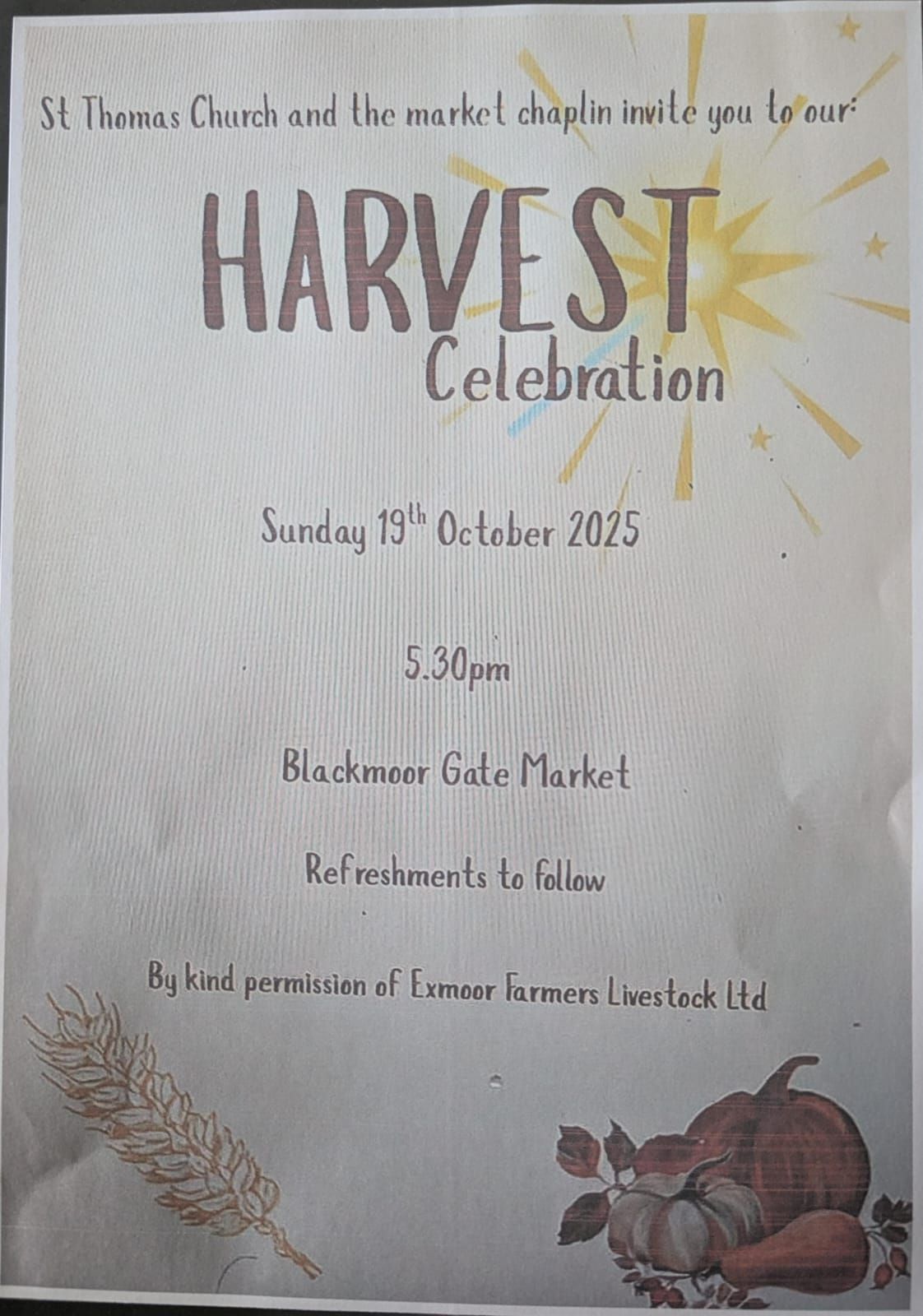 St Thomas church, Kentisbury and the chaplin of Blackmoor Gate Market invite all to join them for their Harvest Celebration