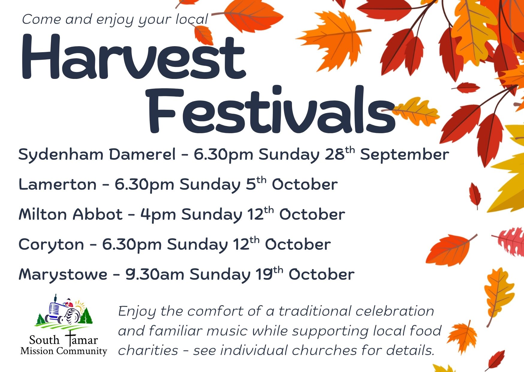 Join us for Harvest Festival at Marystowe, with a service created by Rev Gill George and led by Richard Searight our Licensed Lay Minister. We have some good Harvest 'bangers' to sing, including an amended wording to We Plough The Fields and Scatter, which is proving very popular this year! Refreshments afterwards, and all in a very good cause. (p.s. It is not compulsory to bring a gift in order to get through the door - open to all, so come and enjoy).