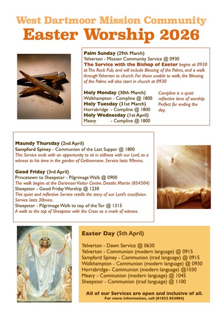See th eposter for all the services in our Mission Community this Eastertide