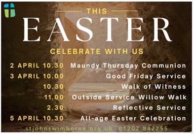 Please see our website for our Easter services. Including Maundy Thursday, Good Friday and Easter Sunday.
