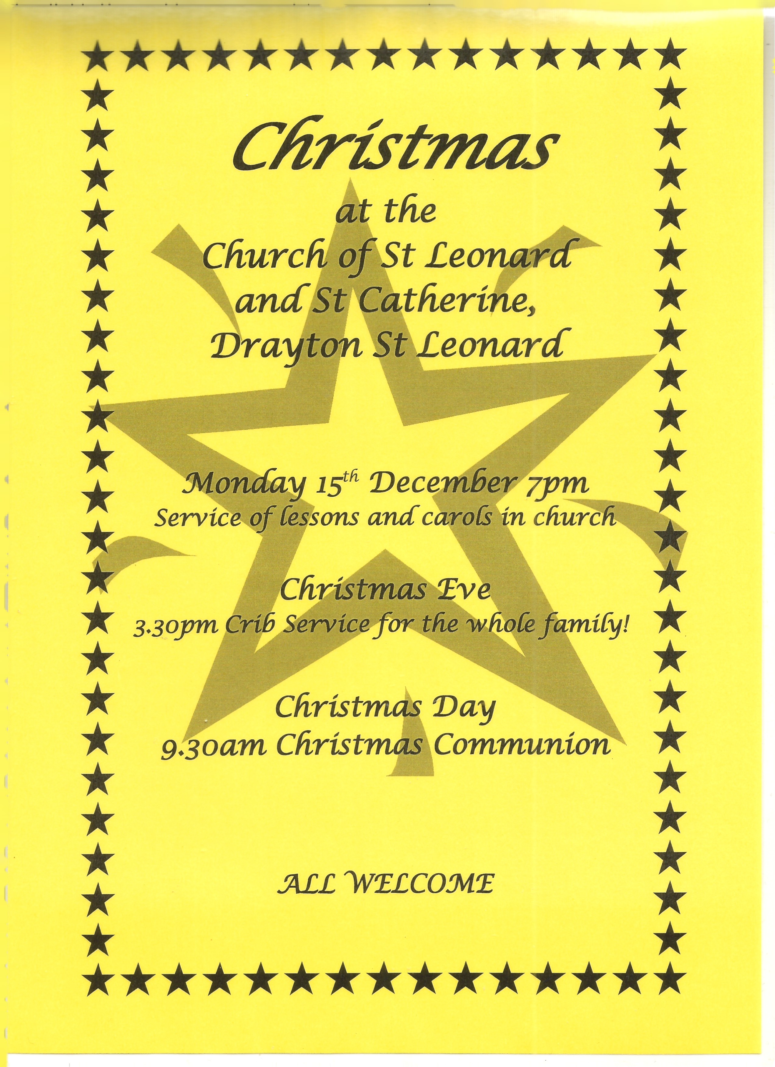 Everyone welcome, children can dress up, especially for the Crib Service, and they can bring some of their newly opened presents to the Christmas Day service.