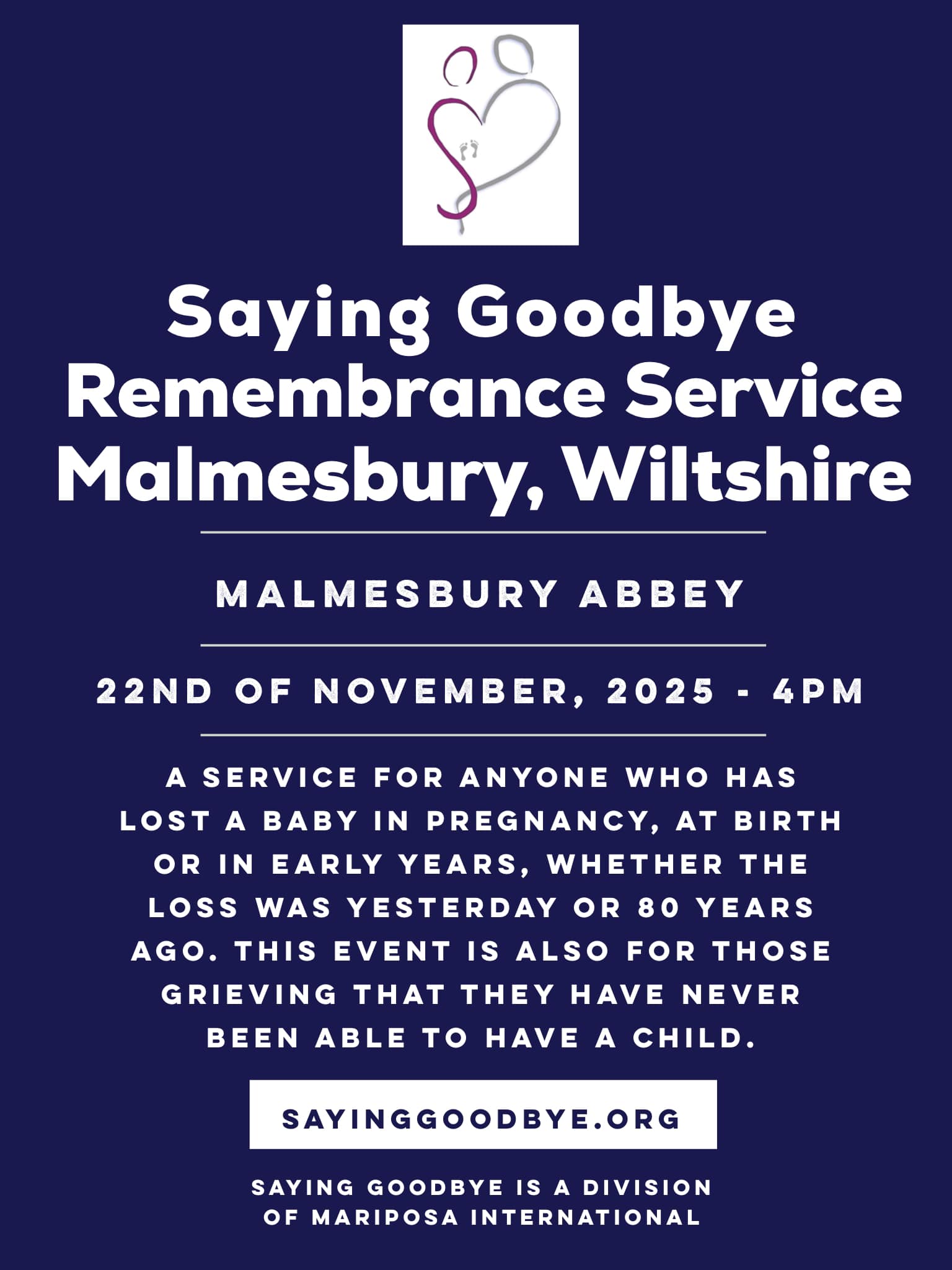 Saying Goodbye, (part of Mariposa International (SG)) are coming to Wiltshire next month with a very special Baby loss remembrance and support service (part of an international chain of events).