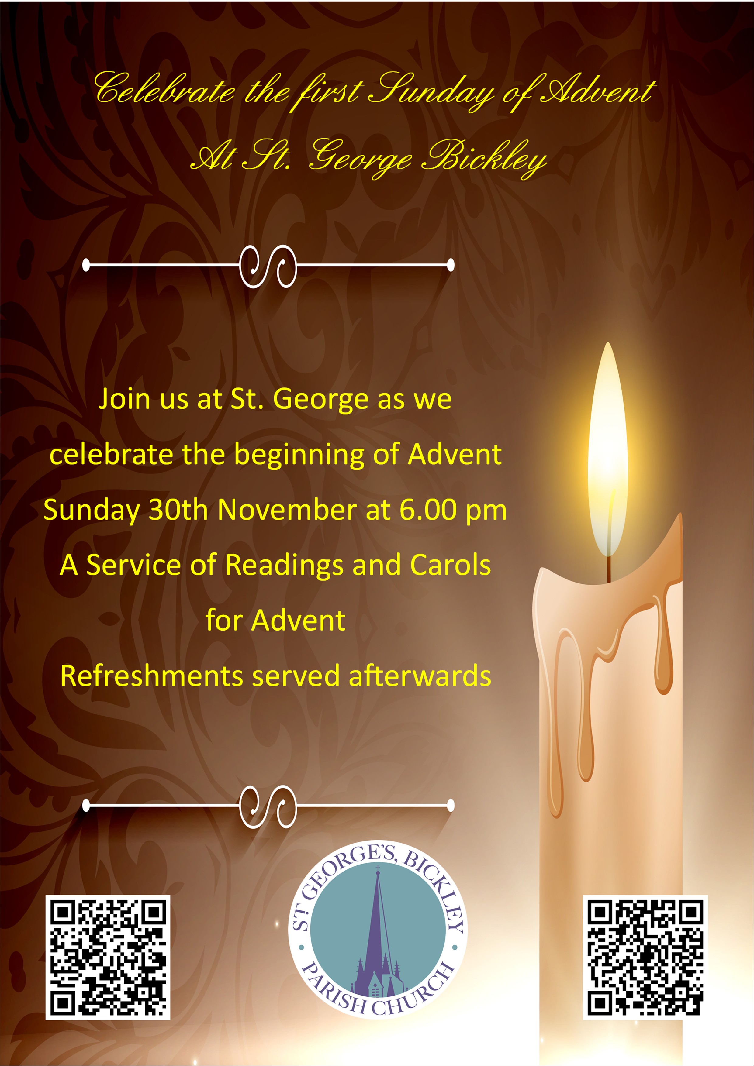 Join us at St. George as we celebrate the beginning of Advent Sunday 30th November at 6.00 pm A Service of Readings and Carols for Advent